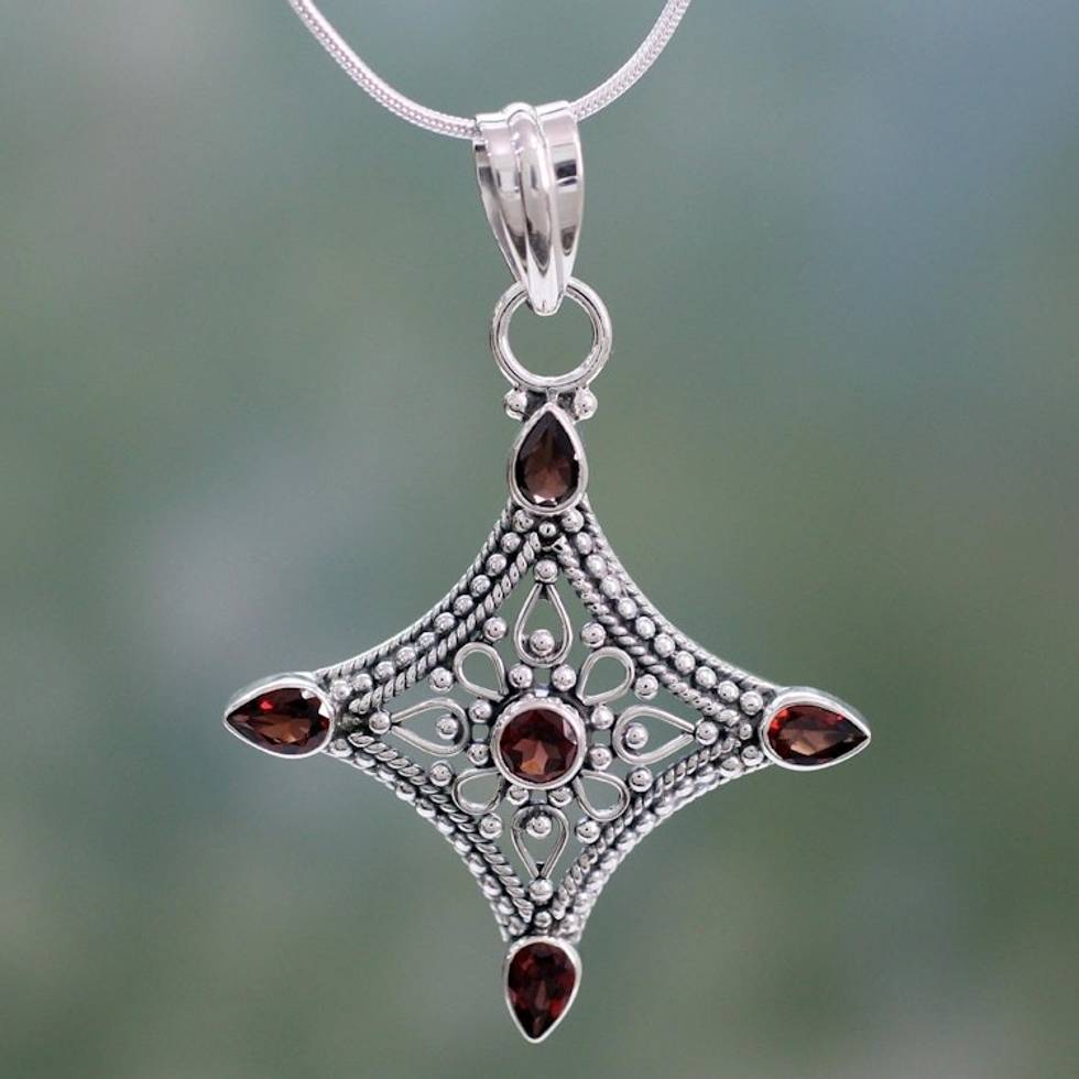 Garnet and Silver Diamond Shaped Pendant Necklace India 'Jaipur Diamond' Item ID: 2671794629
