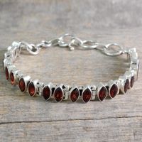 Garnet and Silver Tennis Bracelet Handcrafted in India 'Red Marquise' Item ID: 2671619018