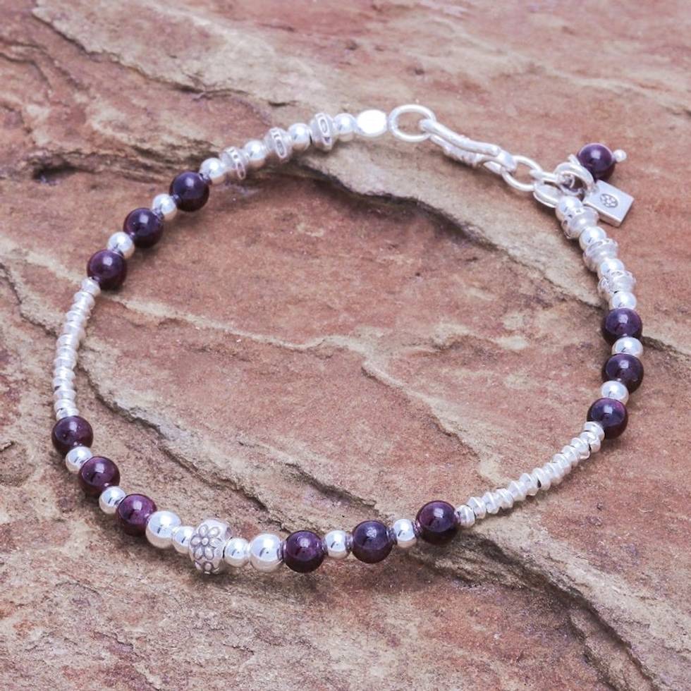 Garnet and Sterling Silver Beaded Bracelet 'Brighter Day in Red' Item ID: 2671641418