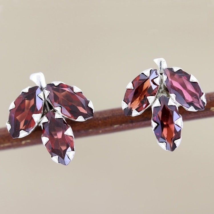 Garnet and Sterling Silver Button Earrings 'Radiant Chinar' Item ID: 2671789858