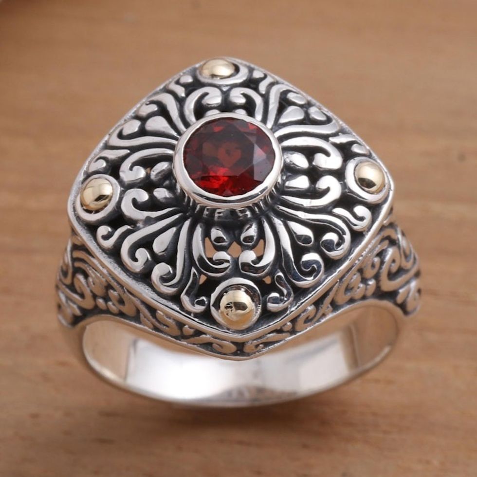 Garnet and Sterling Silver Cocktail Ring from Bali 'Temple Base' Item ID: 2669887231