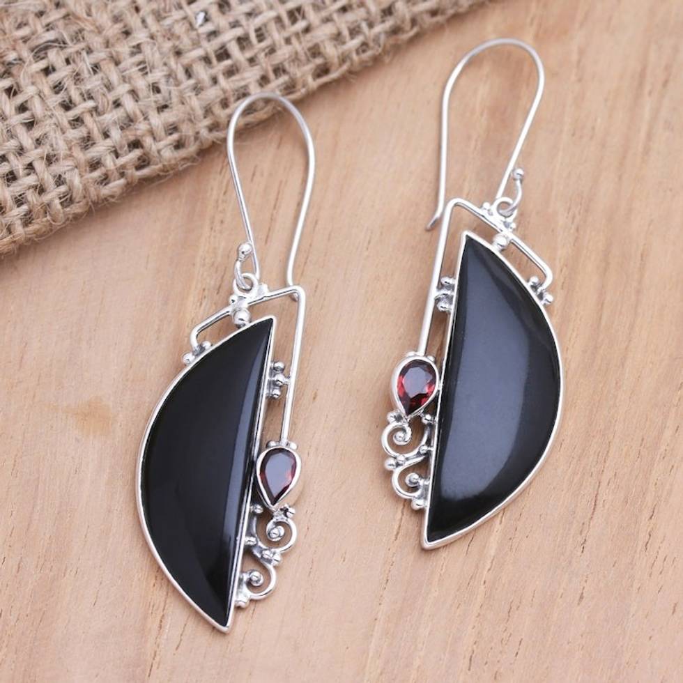 Garnet and Sterling Silver Crescent Dangle Earrings 'Cupid's Arrow' Item ID: 2669920795