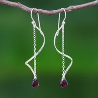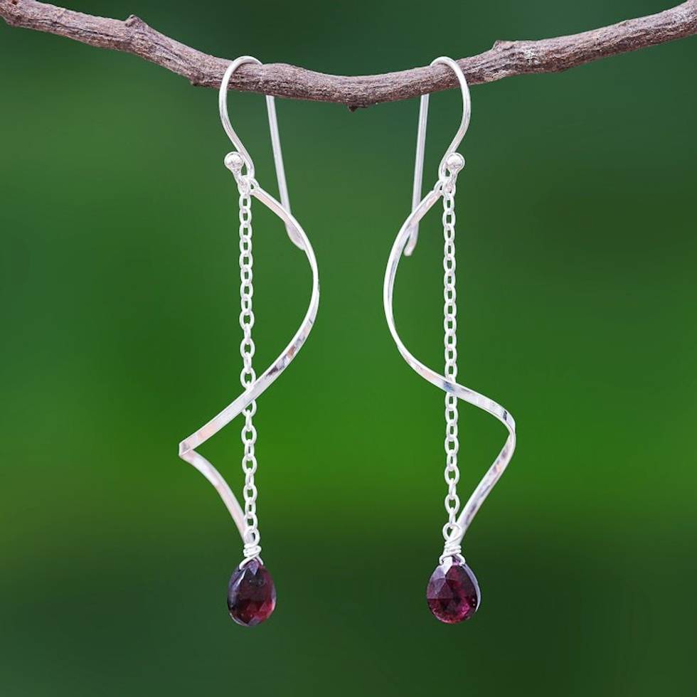 Garnet and Sterling Silver Dangle Earrings 'Solar Spin' Item ID: 2669926115