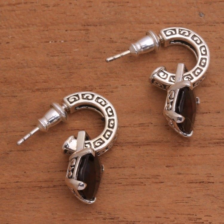 Garnet and Sterling Silver Dangle Earrings from Bali 'Buddha Hoops' Item ID: 2671734781