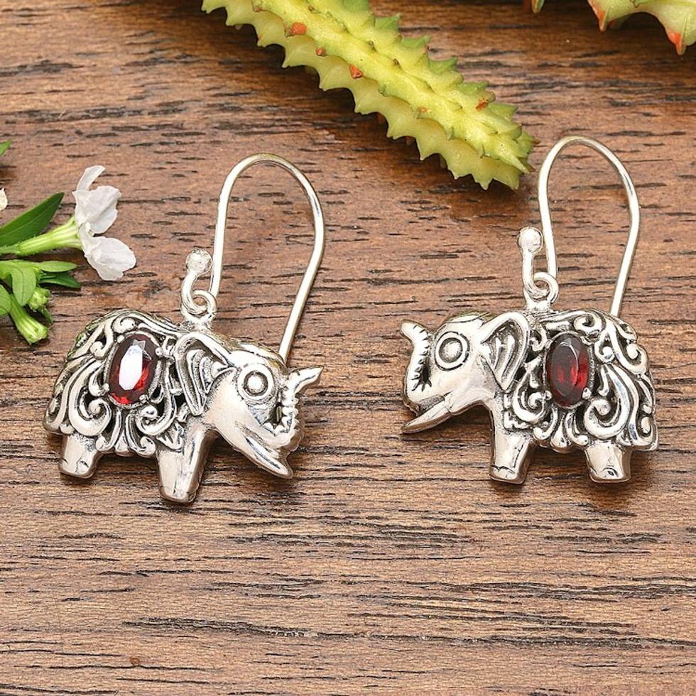 Garnet and Sterling Silver Elephant Dangle Earrings 'Elephant Delight' Item ID: 2671734333