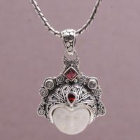 Garnet and Sterling Silver Face Pendant Necklace from Bali 'Diamond Warrior' Item ID: 2671734313