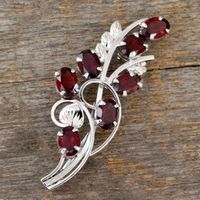 Garnet and Sterling Silver Floral Brooch Pin from India 'Floral Passion' Item ID: 2671793916