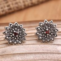 Garnet and Sterling Silver Flower Earrings 'Radiant Chrysanthemum' Item ID: 2671748085