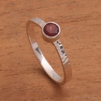 Garnet and Sterling Silver Hammered Solitaire Ring 'Pretty Paradox' Item ID: 2671735823
