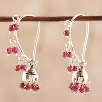 Garnet and Sterling Silver Handcrafted Jhumki Earrings 'Music' Item ID: 2669924256