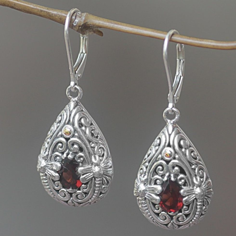 Garnet and Sterling Silver Handmade Dragonfly Earrings 'Dragonfly Duet' Item ID: 2669921454