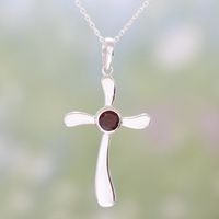 Garnet and Sterling Silver Indian Cross Pendant Necklace 'Heavenly Cross in Red' Item ID: 2671652070