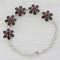 Garnet and Sterling Silver Link Chain Bracelet from India 'Red Blooms' Item ID: 2671790507