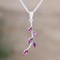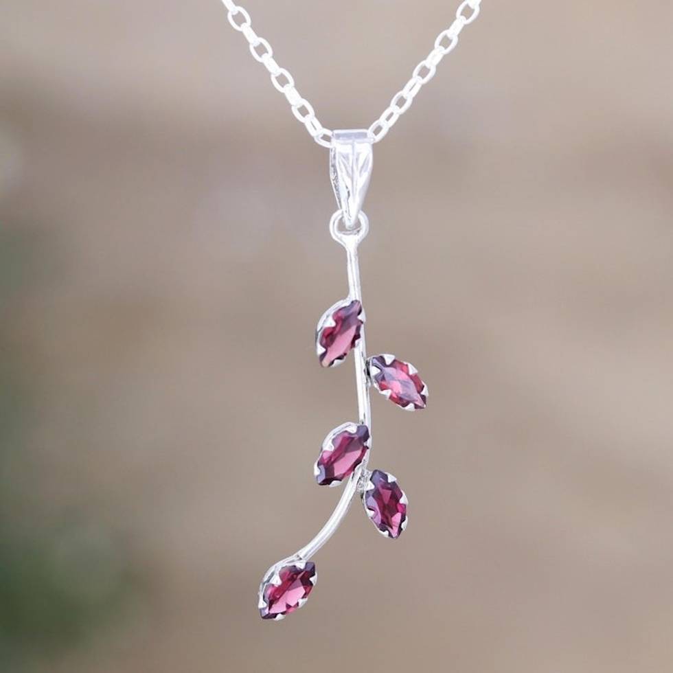Garnet and Sterling Silver Pendant Necklace 'Leaf Sprig' Item ID: 2671787828