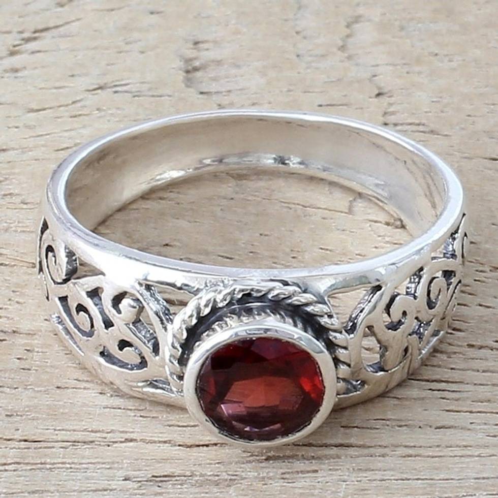 Garnet and Sterling Silver Single Stone Ring from India 'Blossoming Desire' Item ID: 2671793482