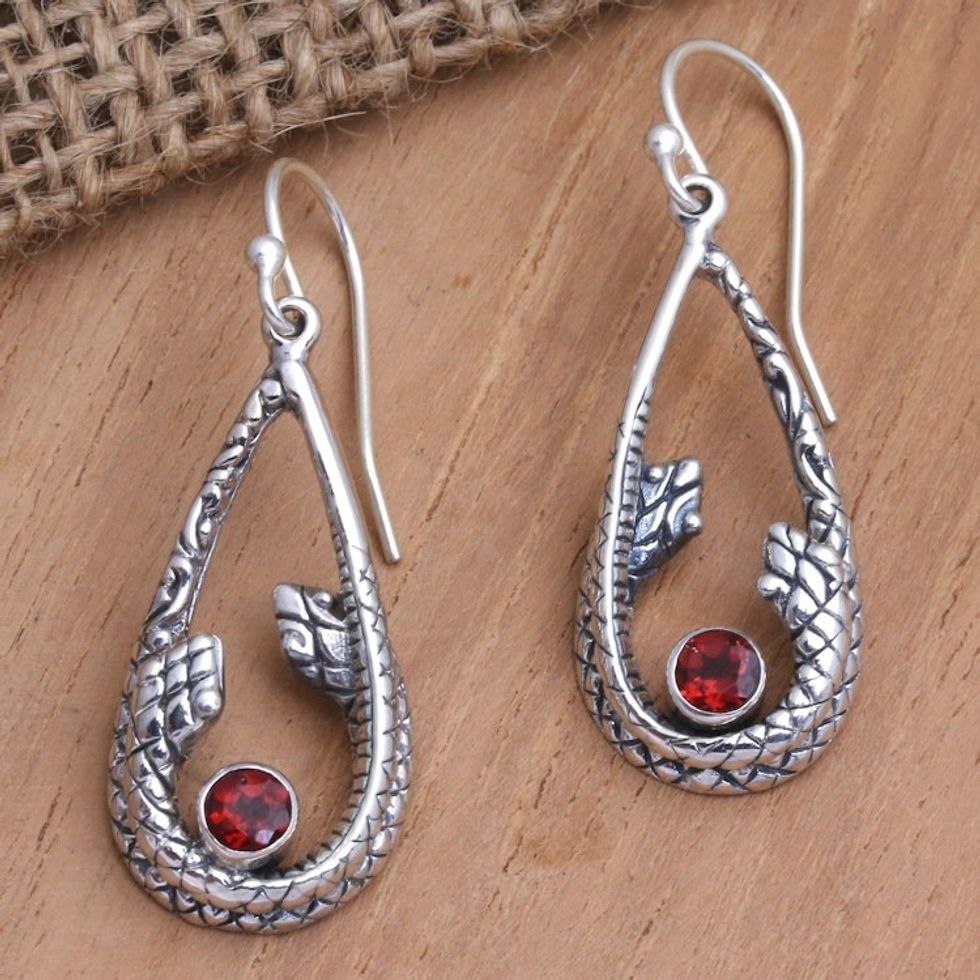 Garnet and Sterling Silver Snake Earrings 'Garter Snake in Red' Item ID: 2669887193