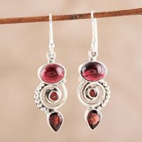 Garnet and Sterling Silver Spiral Dangle Earrings 'Fiery Labyrinth' Item ID: 2671620149