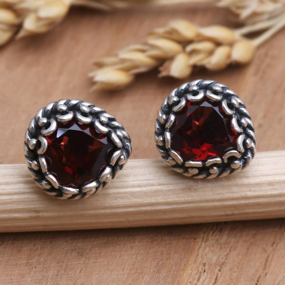 Garnet and Sterling Silver Stud Earrings 'Mon Amour' Item ID: 2671563793