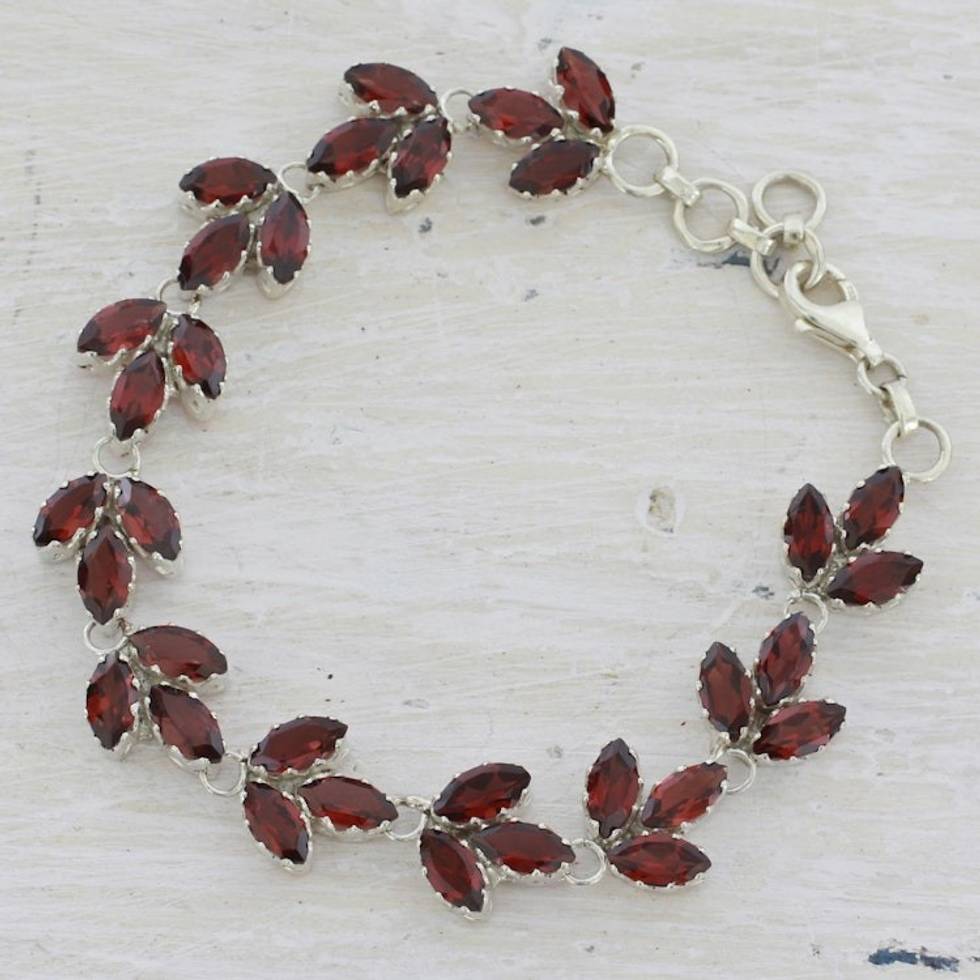 Garnet and Sterling Silver Tennis Bracelet from India 'Autumn Air' Item ID: 2669924285