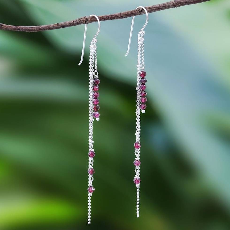 Garnet Beaded Dangle Earrings from Thailand 'Morning Rain' Item ID: 2671640835