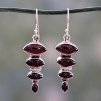 Garnet Cabochon Dangle Earrings Set in Sterling Silver 'Romantic Quartet' Item ID: 2671618982