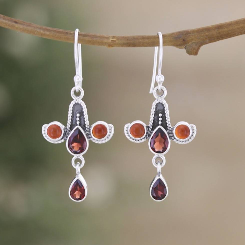 Garnet Carnelian and Sterling Silver Dangle Earrings 'Red Allure' Item ID: 2671786839