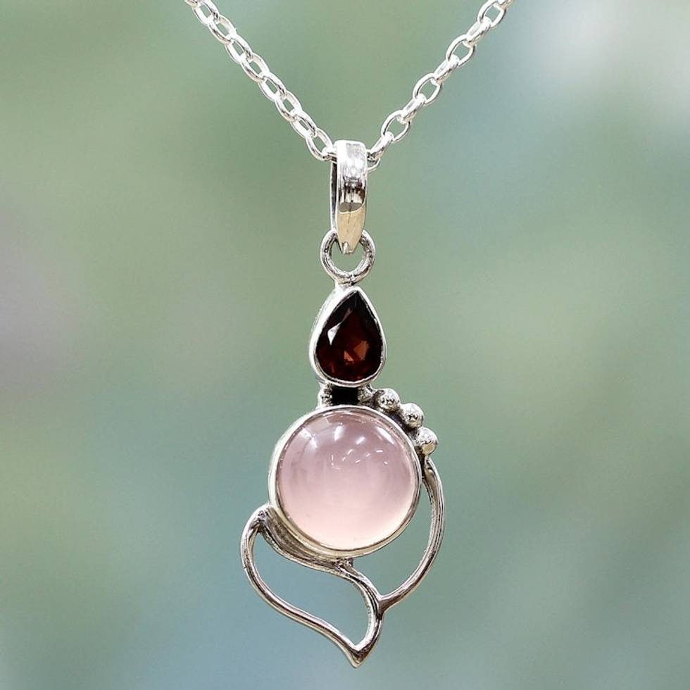 Garnet Chalcedony Sterling Silver Pendant Necklace India 'Pink Crest' Item ID: 2671793330