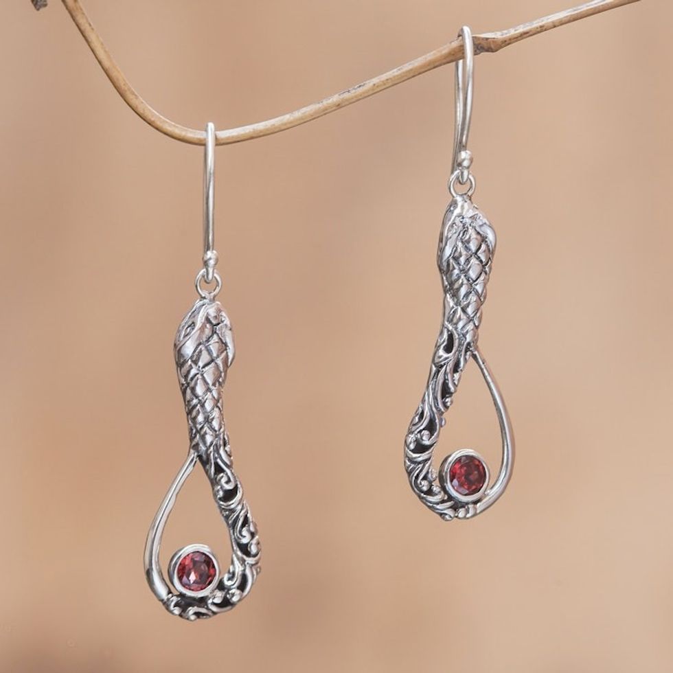 Garnet dangle earrings 'Cobra Passion' Item ID: 2669887177