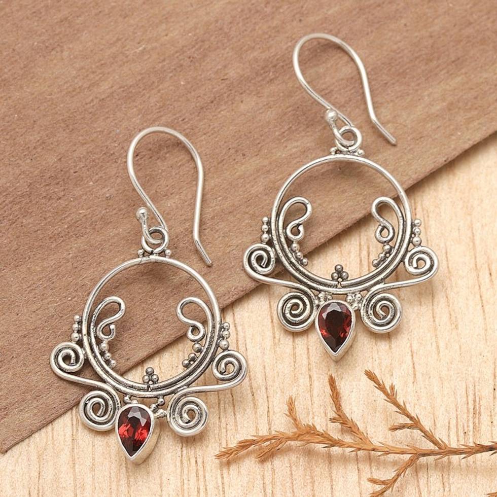 Garnet dangle earrings 'Sundial' Item ID: 2671698424