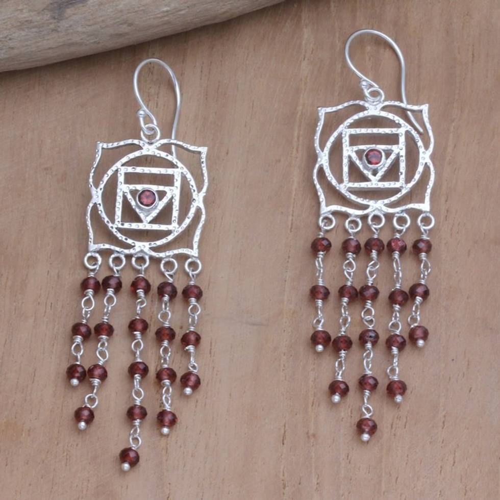 Garnet Dangle Earrings with Chakra Motif 'Root of Desire' Item ID: 2671748648