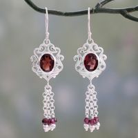 Garnet Dangle Earrings with Jali Motif from India 'Crimson Mughal Flair' Item ID: 2671793252