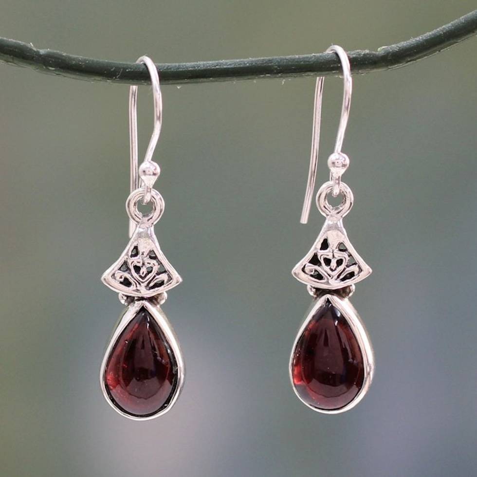Garnet Earrings in Sterling Silver from India 'Crimson Morn' Item ID: 2669943922