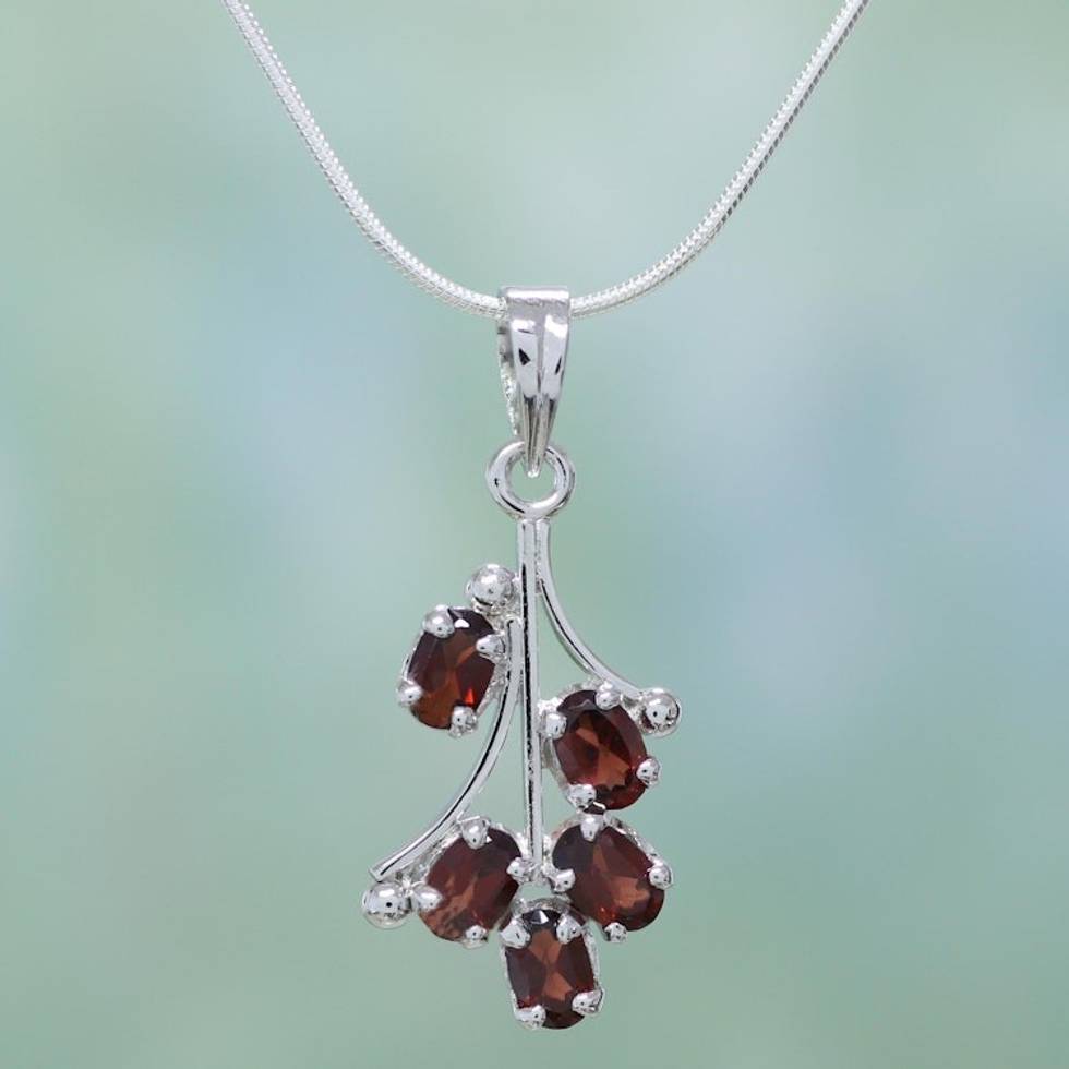 Garnet flower necklace 'Rosebuds' Item ID: 2669924608