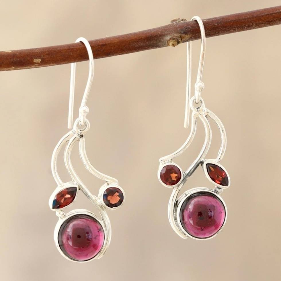 Garnet Gemstone Dangle Earrings 'Triple Fascination' Item ID: 2671789811