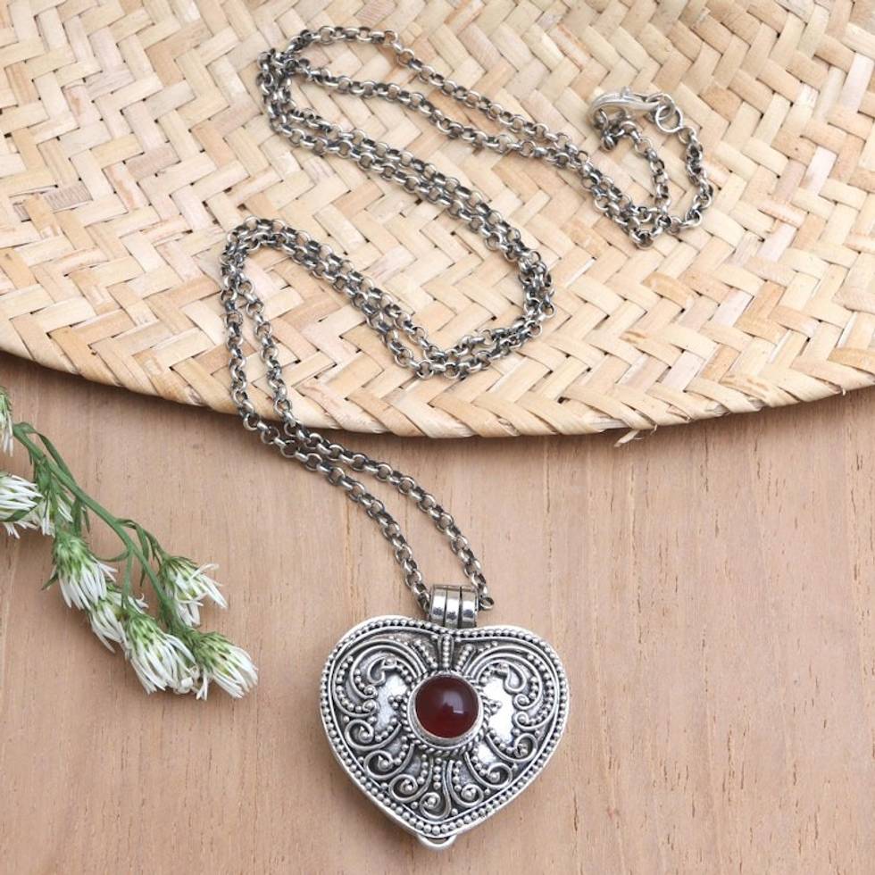 Garnet Locket Necklace with Heart Motif 'Open Secret' Item ID: 2669921286