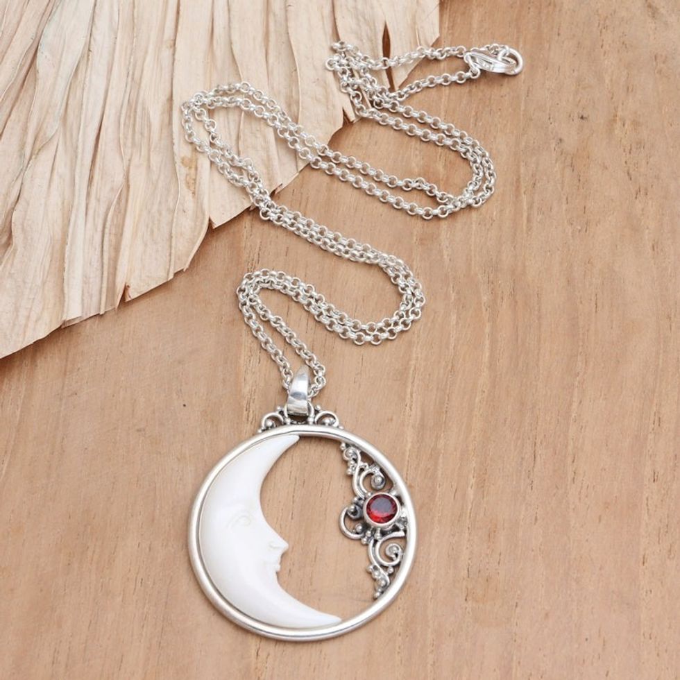 Garnet Pendant Necklace with Crescent Moon Motif 'Knighted Moon' Item ID: 2671748549