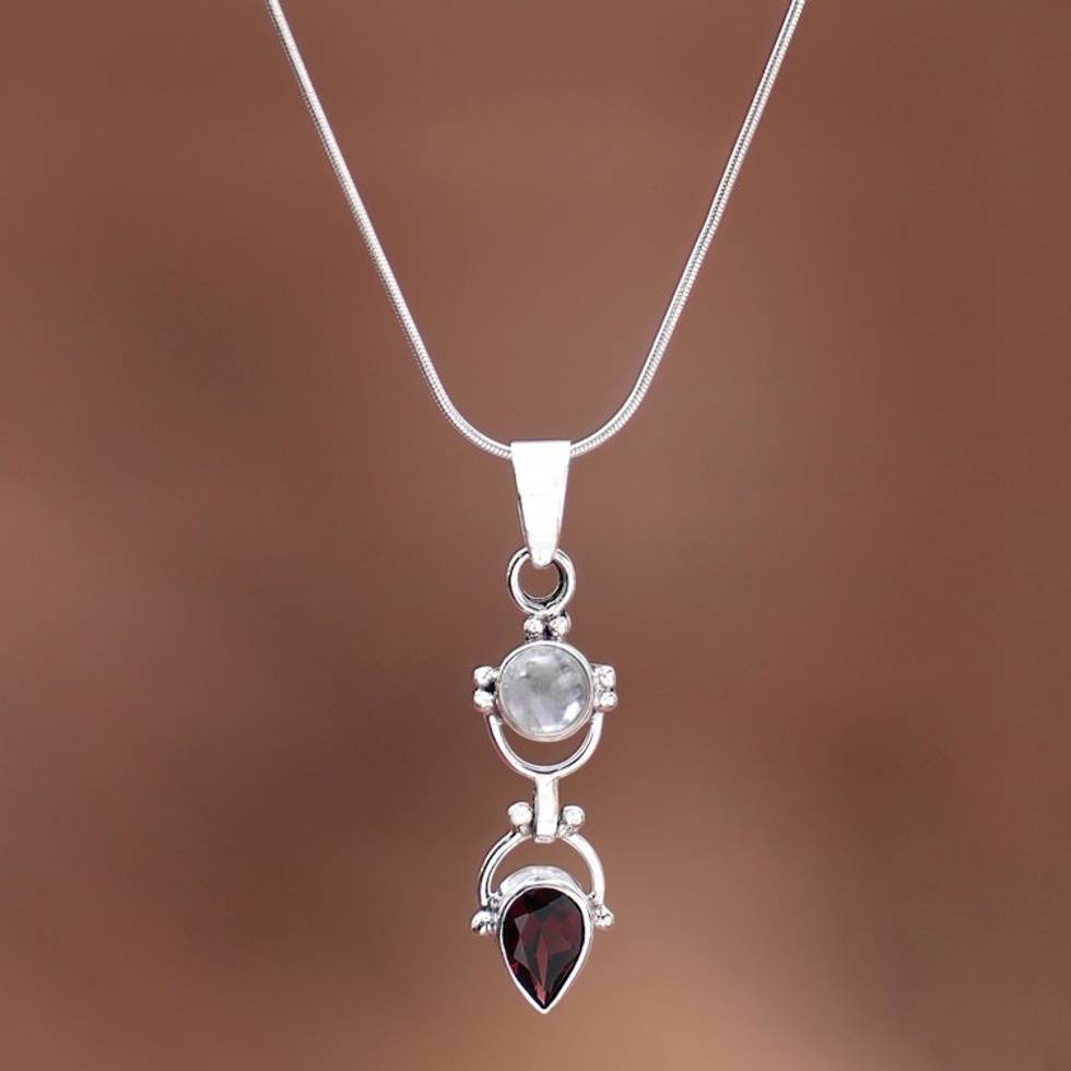 Garnet Rainbow Moonstone Sterling Silver Pendant Necklace 'Dear Younger Sister' Item ID: 2671747907