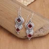 Garnet Sterling Silver Dangle Earrings Crafted in Bali 'Lovely and Witty' Item ID: 2671748528