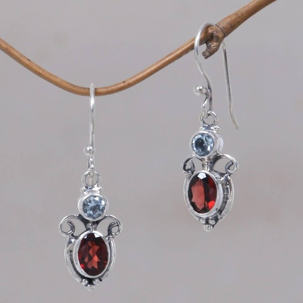 Garnet Sterling Silver Dangle Earrings 'Fire and Ice' Item ID: 2671699389