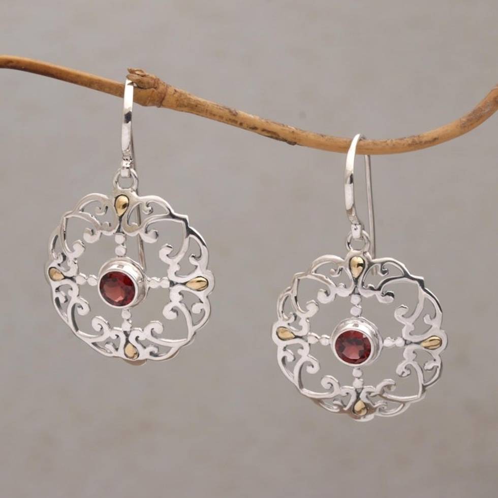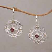 Garnet Sterling Silver Dangle Earrings with 18k Gold Accent 'Exquisite Flora' Item ID: 2671734550