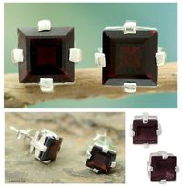 Garnet Studs Artisan Crafted Sterling Silver Earrings 'Crimson Charm' Item ID: 2671620112