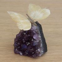 Gemstone Butterfly Sculpture in Honey Calcite and Amethyst 'Honeyed Butterfly' Item ID: 2669935492