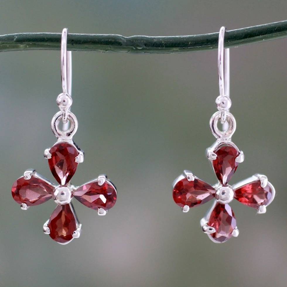 Genuine Garnet Flower Earrings in 925 Sterling Silver 'Scarlet Blossom' Item ID: 2671620026