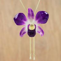 Genuine Purple Orchid Resin Pendant Necklace with Gold Chain 'Orchid Majesty' Item ID: 2669929411