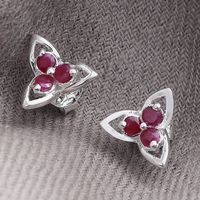 Genuine Ruby Stud Earrings 'Kerala Bougainvillea' Item ID: 2671625811