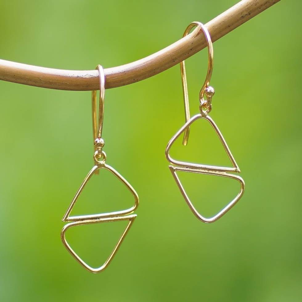 Geometric 18k Gold-Plated Brass Dangle Earrings from Bali 'Harmonious Dimensions' Item ID: 2671821284