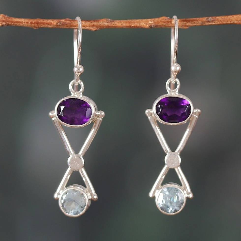 Geometric 4-Carat Amethyst and Blue Topaz Dangle Earrings 'Wise Avant-Garde' Item ID: 2671782072