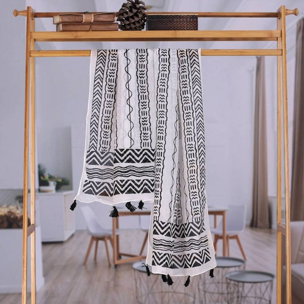 Geometric Block-Printed Cotton Shawl 'Creative Path' Item ID: 2671789068