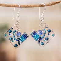 Geometric Blue Crystal and Glass Beaded Dangle Earrings 'Harmonious Blue Constellation' Item ID: 2671626010