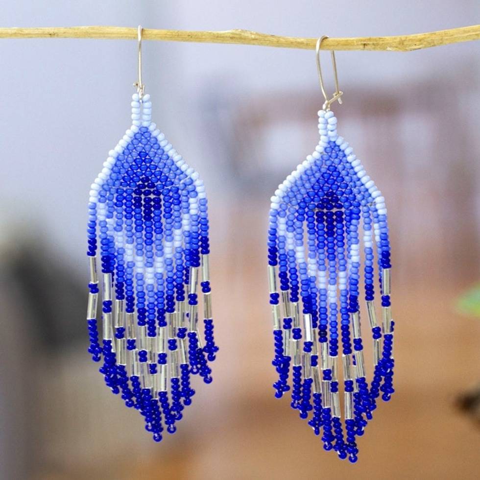 Geometric Blue Glass Beaded Waterfall Earrings from Mexico 'Cascades of Magic' Item ID: 2671798499